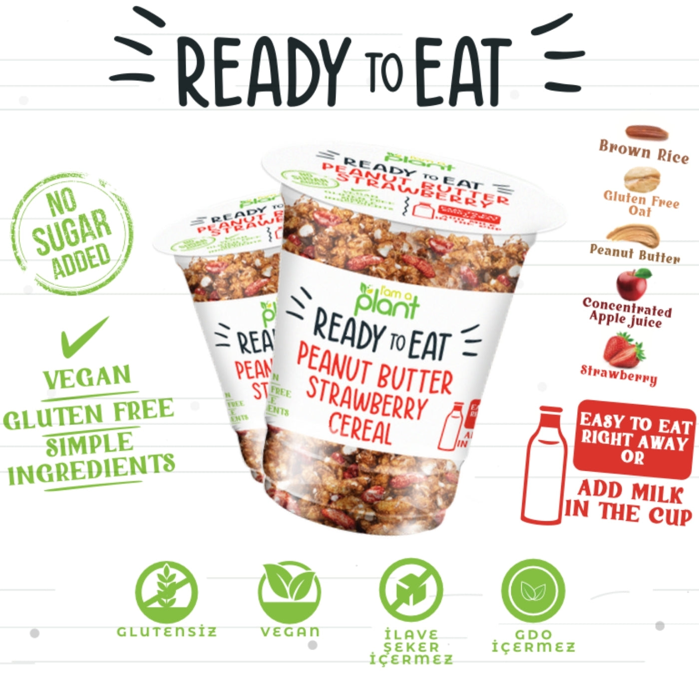 Güzel ürünümüz, ısıl işlem görmeden ve kahverengi pirinç kullanılarak üretilmektedir. Yüksek oranda lif içermektedir. Glutensiz fıstık ezmesi içermektedir. Sağlıklı bir atıştırmalık olduğu için beyaz pirinç asla kullanmıyoruz.