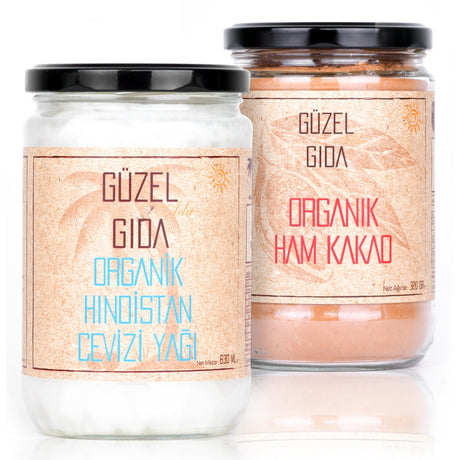 Organik Hindistan Cevizi Yağı 630 ml ve Ham Kakao Tozu 320 gr Aile Boyu