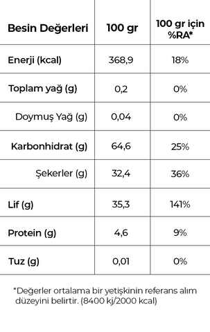 99 mg potasyum 6 mg magnezyum ve 100 gram içerisinde 35,3 gram lif içeren bu besin bombasının kullanımı çok basittir. İçerdiği vitamin ve minerallerden azami etki görmek sütünüze veya süt alternatifinize katarak içebildiğiniz gibi kek, kurabiye hatta çikolata yapımında kulalanbilirsiniz.