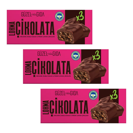 Веганский батончик Lokma Chocolate с двойным какао и лесным орехом, 3x35 г